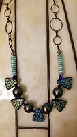 Very trivial rhyme or reason to this necklace. Wanted to use the chocolate-brown spotted beads and so I saw the cute Czech Drinking glass Turquoise. And so much fun.