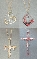 Components: one) cross one - 18g gold square wire, 24g gold half round wire, 20g gold wire, champagne colored apartment back crystal in setting. 2) cantankerous two - 20g silver wire, 24 thousand argent half round wire, 20g reddish wire and ii crimson 4mm Chinese crystals. iii) Heart - 18g silvery square wire, 24g gold wire, 4 gold 3mm gilt spacer beads. 4) Love Rose - Square golden frame, 20g red wire, 24g green wire. (all take silver or aureate cervix chains)