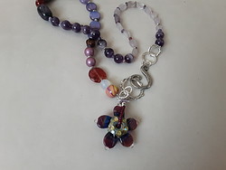 Components: Lampworked blossom, Amethyst, Lavender Amethyst, magatamas, pc bead, Czech glass, magenta shell pearls, silver chain, GGS hook.