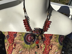 Couldn't wait to use these vintage red drinking glass beads. The focal is very heavy and I had to make sure the support was hefty also.