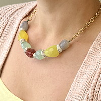 Components: Unakite focal and rice chaplet, brass marquis frames, jump rings, chain, clasp